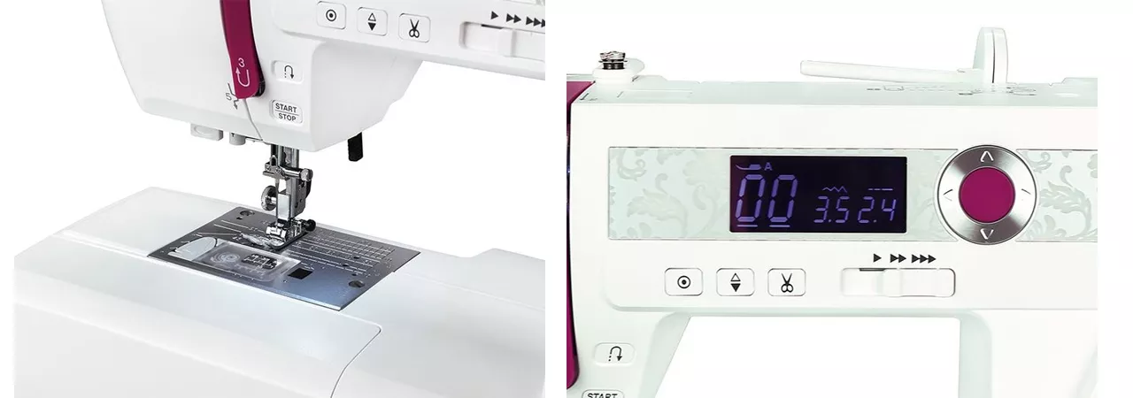 Janome ArtDecor 734D имеет большой выбор швейных операций, включая разнообразные декоративные строчки и строчки для квилтинга, а также шесть видов петель для пуговиц. Все петли выполняются в автоматическом режиме. Машина оснащена функцией автоматической закрепки и обрезки нити, что облегчает работу. Швейным советником поможет выбрать нужные параметры: жк-дисплей с подсветкой отображает рекомендации и подсказки в виде знаков по каждой швейной операции.