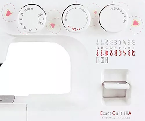 Exact Quilt 18A – это новое поколение недорогих и надёжных швейных машин от японской компании Janome. Модель отличается изящным дизайном и большим количеством швейных операций на любой вкус. Новичок оценит простоту настройки и эксплуатации машины, а профессиональная швея – эргономику и удобство при интенсивной работе.