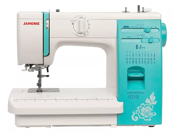 - Janome HomeDecor 1019 имеет металлическую станину, которая добавляет машине дополнительную устойчивость при шитье на больших скоростях.