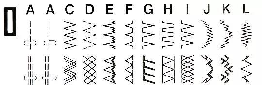 стандартная-зигзаг, для обметывания петель, для вшивания молнии, для потайной строчки |
