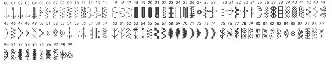 обметочная, эластичные, потайные, зигзаг, оверлочные, атласные сатиновые, квилтинг, пэчворк, декоративные, прямая, сотовая, штопка, мережка, прямая усиленная |