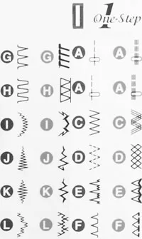 стандартная-зигзаг, для вшивания молнии, для обметывания петель, оверлочная, для потайной строчки |