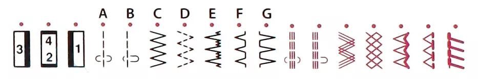 стандартная-зигзаг, для обметывания петель, для вшивания молнии, для потайной строчки |