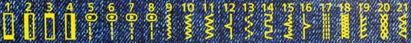 прямая, зигзаг, зигзаг эластичный, оверлочные, потайные, эластичные, сотовая |