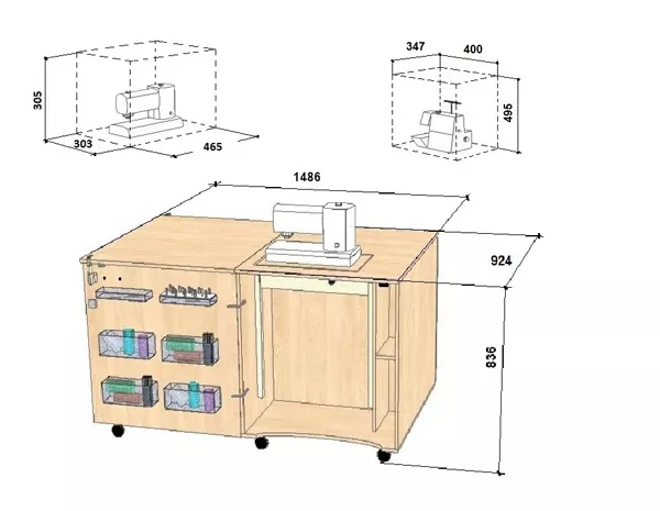 Так же будет предложена одна модель для владельцев крупной швейно-вышивальной техники,которые хотят хранить вышивальный модуль в столе.Такой стол будет изготавливаться по договоренности.