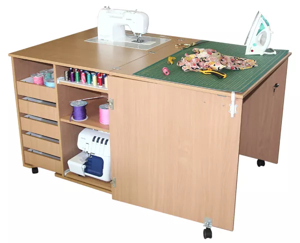 Рабочую поверхность в любой момент можно использовать и в других бытовых целей. Например, пока вы шьете ,Ваш ребенок готовит уроки рядом с Вами.