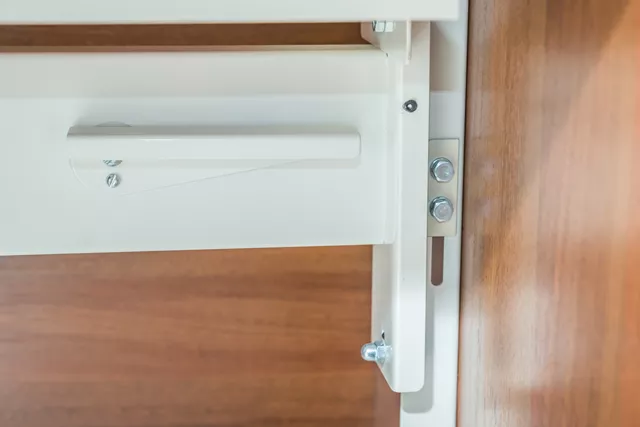 Столы серии LE для машин увеличенных габаритов и весом до 25 кг, а также швейно-вышивальной техники. Конструкция стола, аналогична стандартным моделям, но в отличии от них эта серия будет иметь увеличенную площадку для швейной машины (305мм х 605мм), допустимую высоту швейной машины (420мм), подъемный механизм до 25 кг, а также большее количество контейнеров для фурнитуры.