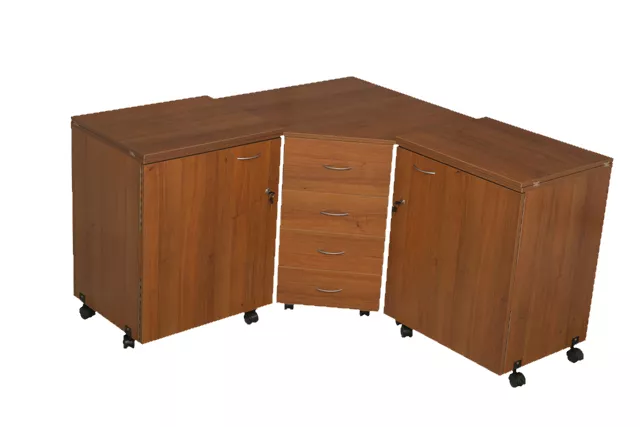 Фасады и поверхности изделия выполнены в стиле "классик" и покрыты немецким синтетическим шпоном, что придает ему более гармоничный и богатый вид. Для улучшения эргономики рабочего места, внутренние рабочие поверхности стола выполнены в светлом цвете.