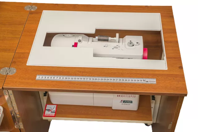 Стол сконструирован таким образом, что после окончания работы вставка для комфортного шитья может храниться непосредственно внутри самой крышки.