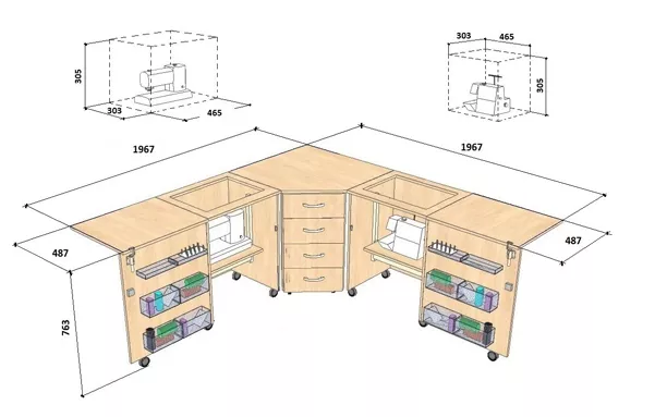 - Третье - для шитья и вышивания, когда машина и оверлок находятся на поверхности стола.