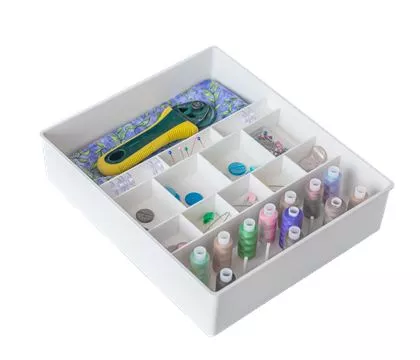 Контейнеры для швейных принадлежностей (4 глубоких и 2 мелких), игольница, подставка для катушек.
