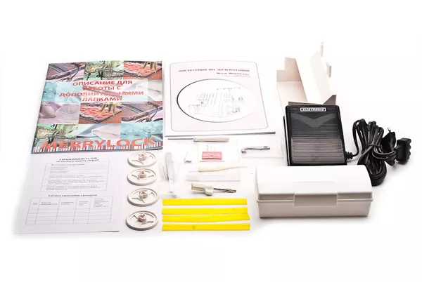 В комплекте к каверлоку Merrylock 006 так же идут: ножная педаль, набор игл, отвертка, масленка, диски от роспуска ниток, шестигранный ключ, футляр для хранения аксессуаров. Такая функциональная оснащенность оверлока делает его достойным конкурентом на рынке швейного оборудования. Имея в арсенале эту модель, ваши изделия всегда будут выгодно отличаться качеством, аккуратностью внешнего вида и сроком службы. Ведь не всегда бывает достаточно мастерства швеи, важную роль так же играет оборудование, при помощи которого изделия изготовляются. С оверлоком Merrylock 006 вы без труда сможете оттачивать имеющиеся навыки и приобретать новые