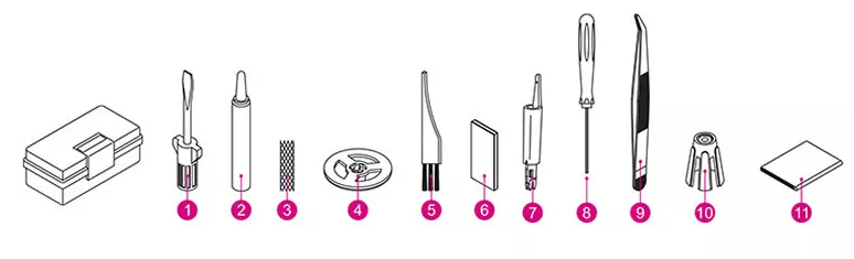 К устройству прилагается мягкий чехол и комплект основных аксессуаров. В дальнейшем можно дополнительно приобрести специальные лапки, иглы и нити.