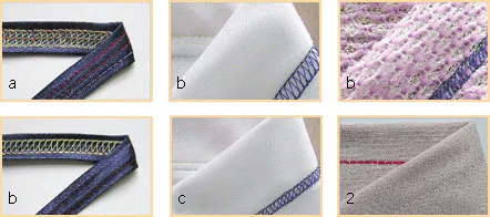 Четыре вида профессиональных плоских швов используются для пошива эластичных тканей таких как трикотаж, изготовления шлевок и отделка низа изделия.