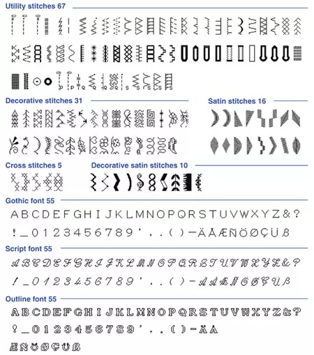 | прямая, зигзаг, оверлочные, потайные, эластичные, узоры, квилтинг, сотовая, атласные сатиновые, декоративные, крестообразные |