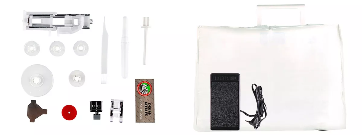 Горизонтальный челнок облегчает заправку нижней нити. Встроенный нитевдеватель поможет Вам без труда вдеть нитку в игольное ушко. Кнопка старт/стоп, регулятор скорости, автоматическая закрепка и другие встроенные функции в EasyLine 50 созданы, чтобы облегчить и ускорить процесс шитья.