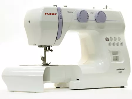 Family Silver Line 3008 имеет все необходимые рабочие строчки, среди которых трикотажные и потайная подшивка низа. Также машина позволяет выметывать петлю в четыре приема без разворота ткани. А хорошая комплектация лапок поможет справиться с различными видами работ. Функция петля-полуавтомат позволит Вам быстро и качественно выполнить петли различной длины. Вы можете снять часть столика швейной машины для удобства обработки манжет, низа брюк и других трубчатых изделий. Лапка этой машинки может быть заменена за считанные секунды. Достаточно нажать сзади на рычаг, чтобы отсоединить старую лапку, затем подложить новую лапку под лапкодержатель и опустить его - лапка заменена. Большой набор лапок и принадлежностей, входящих в комплект к машине, облегчит Вам работу.