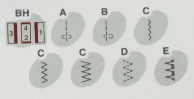 для вшивания молнии, стандартная-зигзаг, оверлочная, подрубочная, для декоративных строчек, для вшивания молнии, для обметывания петель |