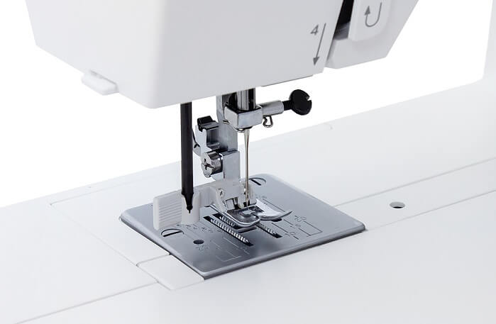 - Встроенный заправщик нити: нитевдеватель сам протягивает нить через ушко иглы.