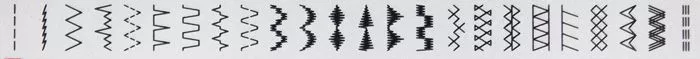 гофрированная, зигзаг, потайные, прямая (левое положение иглы), прямая (центральное положение иглы), пунктирная, рабочие, соединительная, эластичный зигзаг, штопка, эластичная для пришивания резинки, оверлочные, крестообразные, декоративные, сотовая |