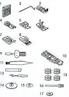 - лапка для автоматической обметки петель (хранится в откидном столике)
