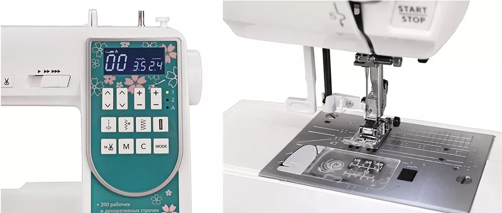 Швейная машина Janome Clio 200 имеет компьютерное управление. Вместо привычных регуляторов модель оснащена ЖК-дисплеем и 12 кнопками, с помощью которых легко выбрать нужную операцию, увеличить или уменьшить параметры стежка.