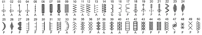 - 50 стежков, включая фамильные и стежки для квилтинга