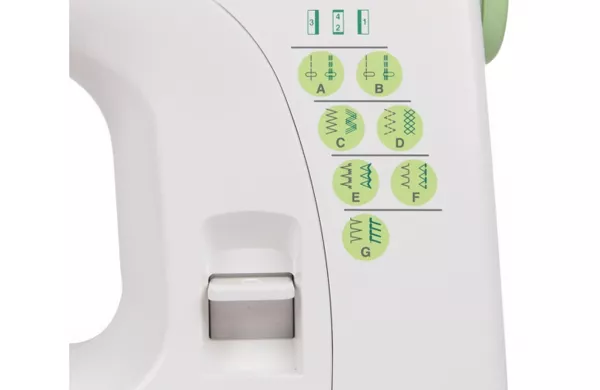 Машина надежна и проста в управлении. Идеально подходит для начинающих портних, учащихся школ и колледжей.