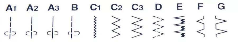прямая, зигзаг, оверлочные, потайные, пунктирная, соединительная, эластичный зигзаг, штопка, эластичные |