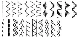 прямая, зигзаг, эластичный зигзаг, оверлочные, потайные, эластичные, сотовая, декоративные |
