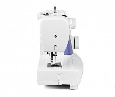 Машина имеет металлическую станину, но отличается небольшим весом и размером. Она подойдет для шитья и ремонта одежды дома, обучения шитью и любых небольших обработок материалов.