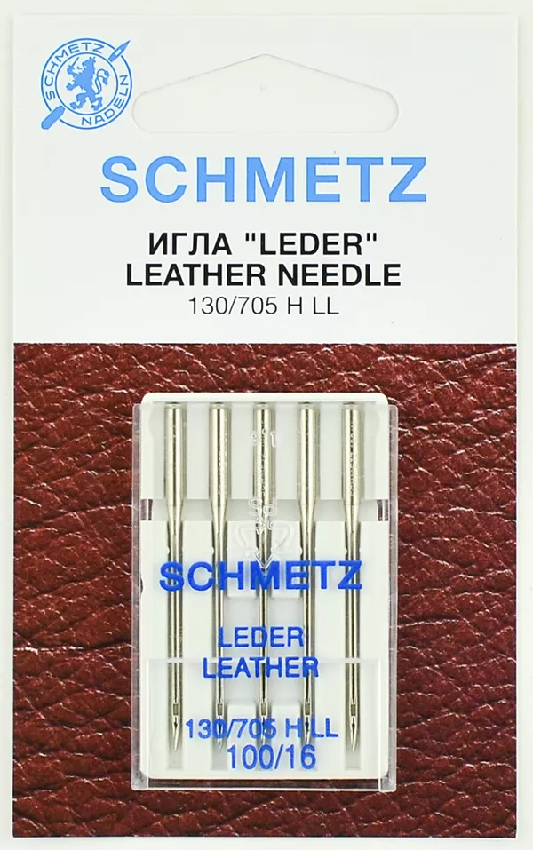 Иглы Schmetz для кожи, замши 130/705 H-LL №100 для бытовых швейных машин, 5 шт. в упаковке