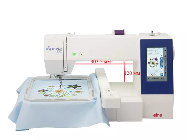 Увеличенная рабочая поверхность Ш303.5 x В120 мм. Elna eXpressive 830 имеет самую большую рабочую поверхность среди вышивальных машин Elna. Теперь можно не ограничивать себя, у вас всегда найдется достаточно пространства для воплощения любой творческой идеи. Рабочая поверхность подсвечивается 5 яркими светодиодами